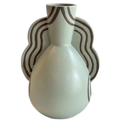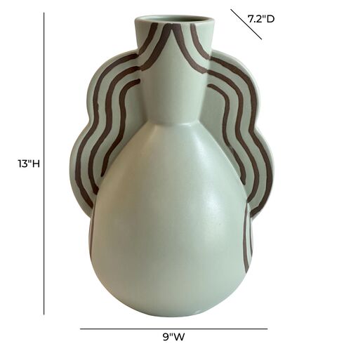 Mirell Ceramic Line Art Wavy Vase, Sage Green