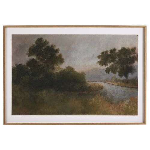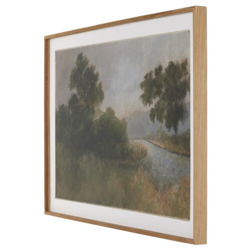 40" x 60" Flowing In A Dry Land Painting by Aileen Fitzgerald, White Oak Frame