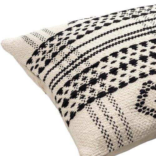 Myrna Patterned Cotton Accent Pillow, Beige/Black