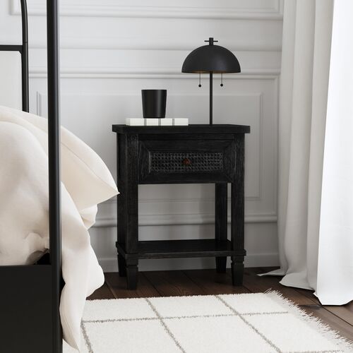 Myrtle Cane 1-Drawer Nightstand, Washed Black