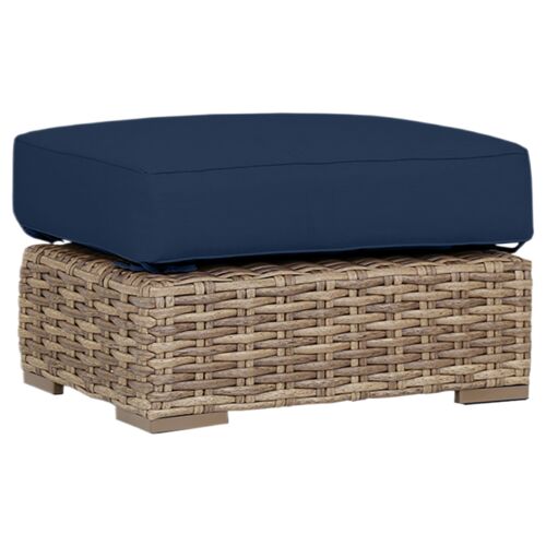 Makenna Wicker Outdoor Ottoman, Natural/Cream