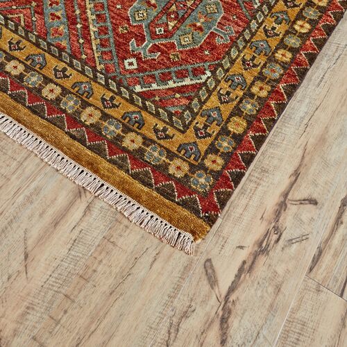 Vardo Damask Rug, Red/Gold
