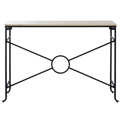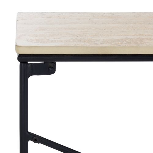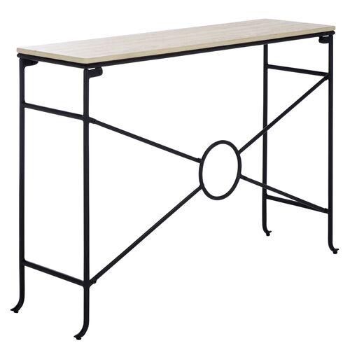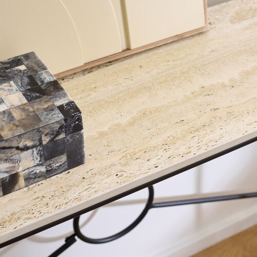 Neriel Ceramic Travertine Top Console Table, Beige/Black