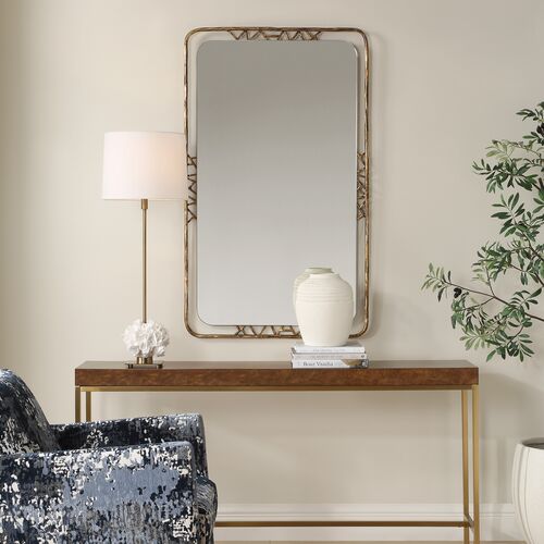 Renée Rectangular Wall Mirror, Hammered Gold