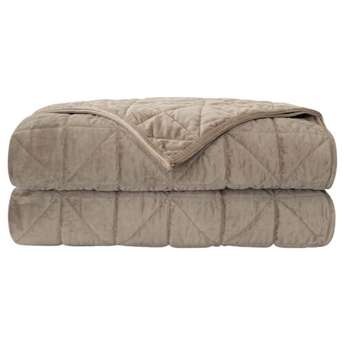 Nora Quilted Velvet Coverlet, Fawn