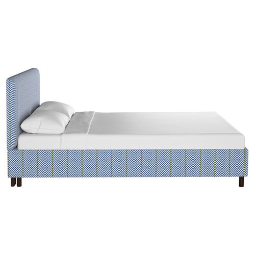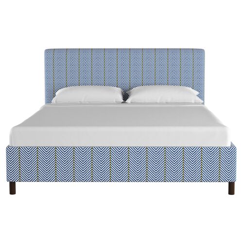 Novak Platform Bed, Blue Herringbone