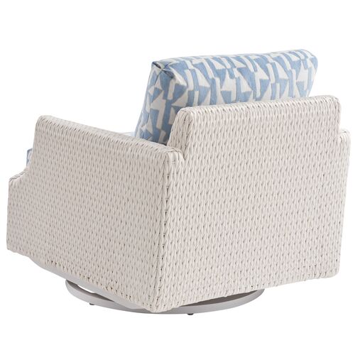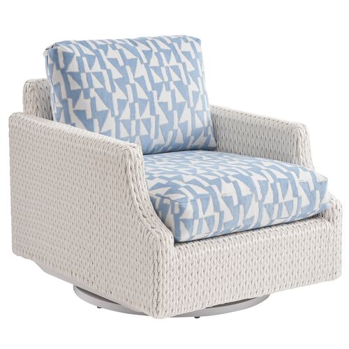 Ocean Breeze Promenade Outdoor Swivel Lounge Chair, White/Geometric Blue/Aqua