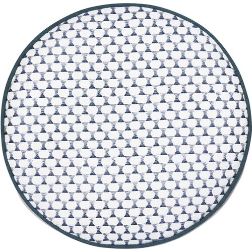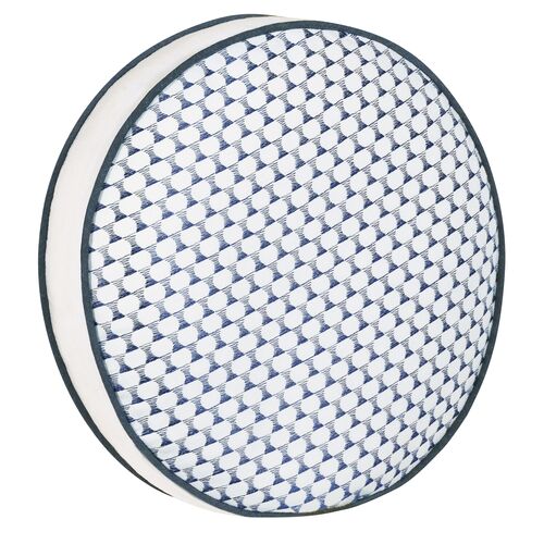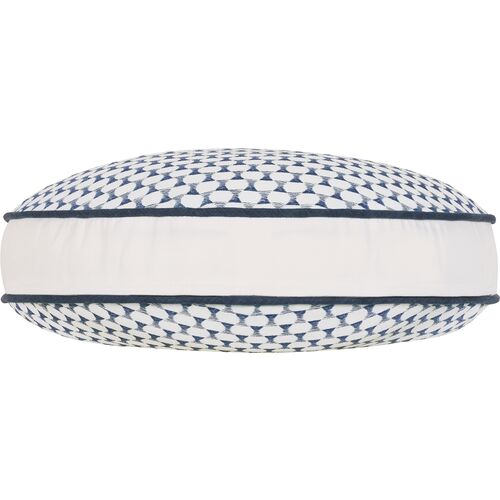 Oceane 14x14 Embroidered Tambourine Pillow, White/Navy