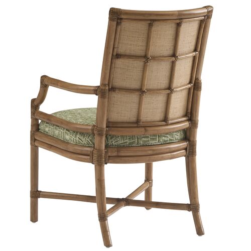 Oceanside Rattan Arm Chair, Geometric Green