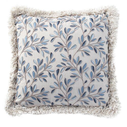 Olive Branch Ivory Fringe Indoor Throw Pillow, Indigo