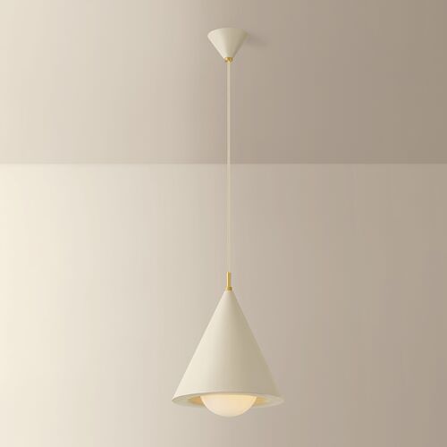 Olive Dome Pendant, Aged Brass/Textured Bisque