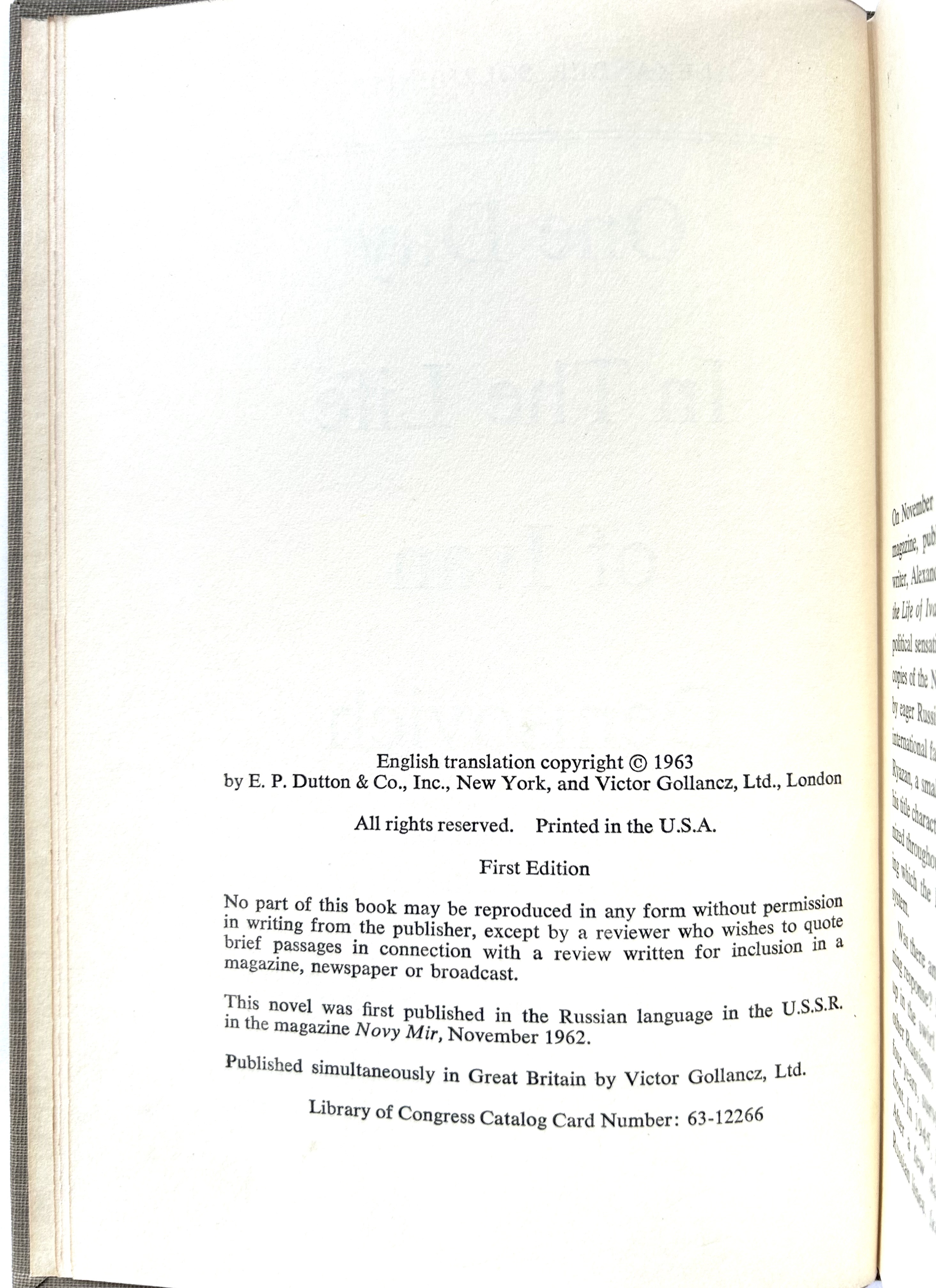 One Day Life of Ivan Denisovich 1st U.S.Ed.