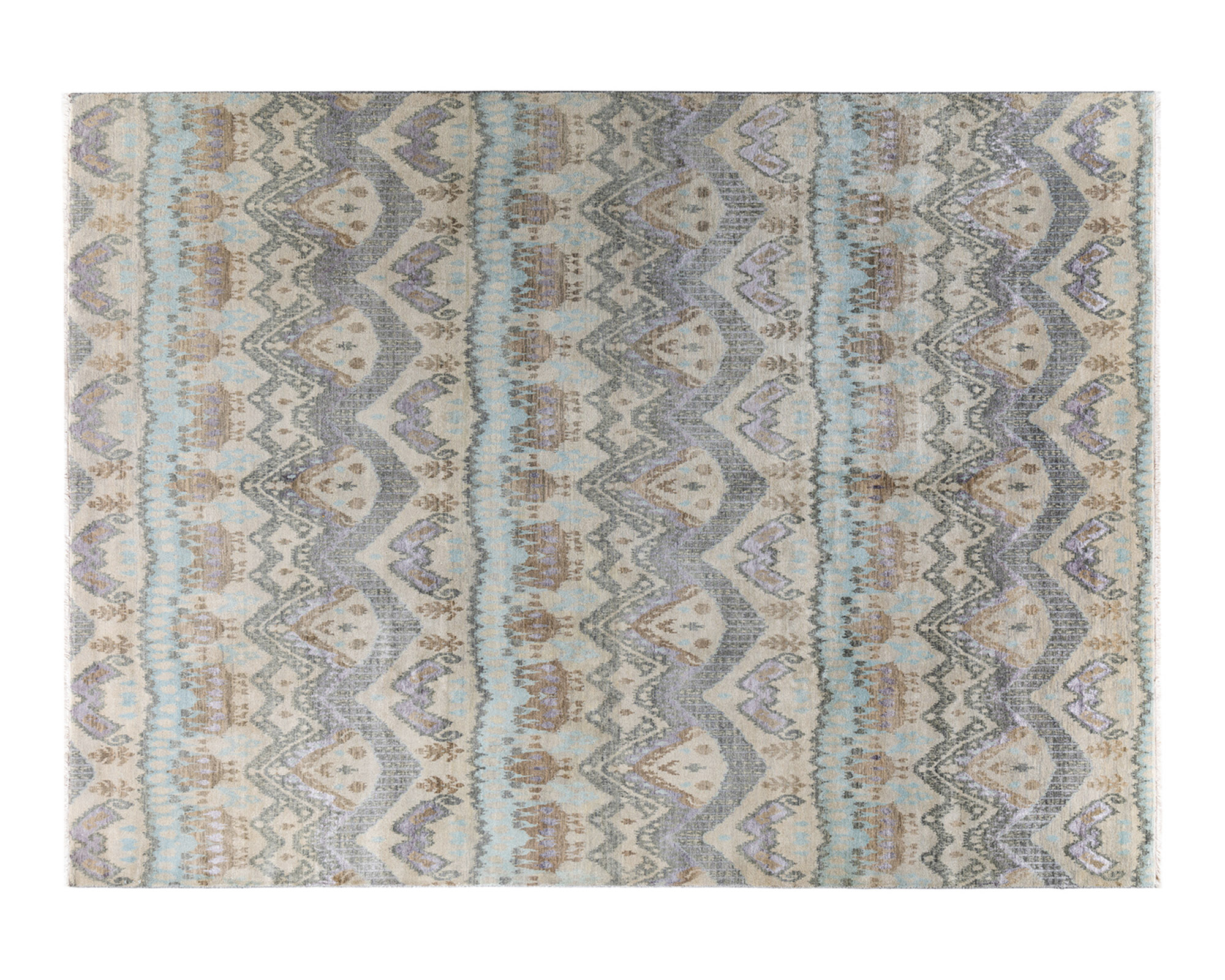 One-of-a-Kind Hand-Knotted Ikat Beige Rug, 9' x 12'2"