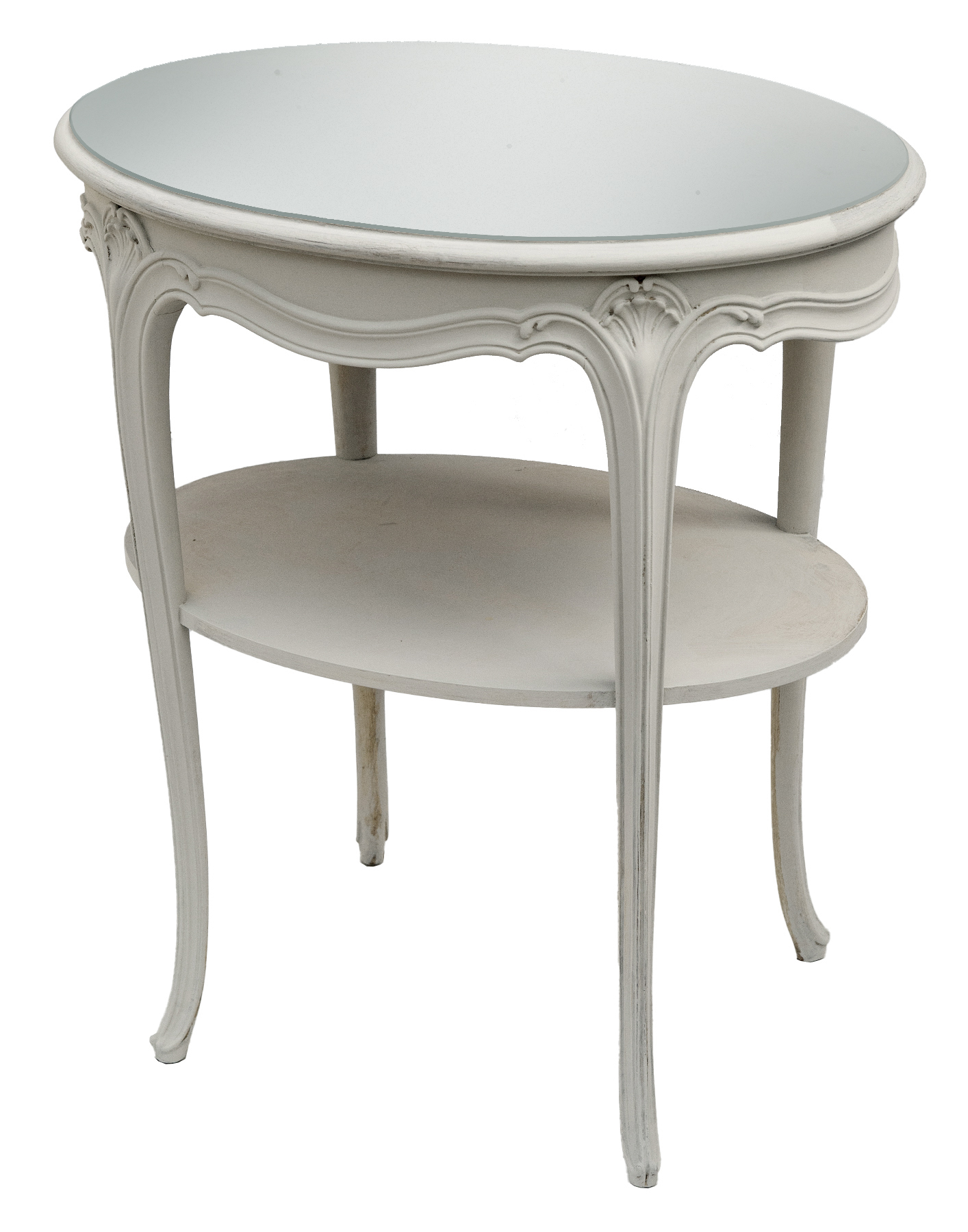 Oyster White Oval Side Table/Glass Top
