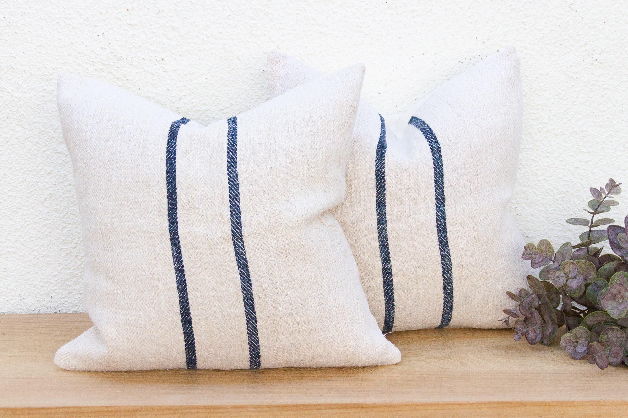 Pair of Antique Grain Sack Linen Pillows