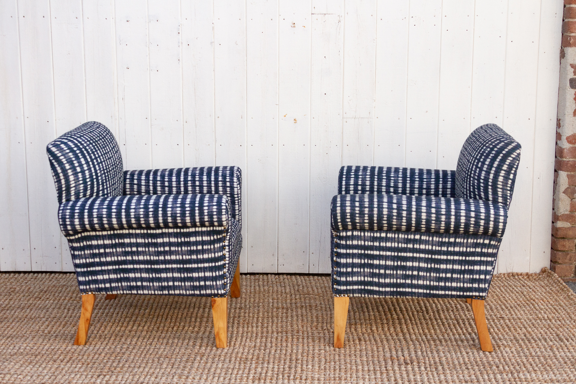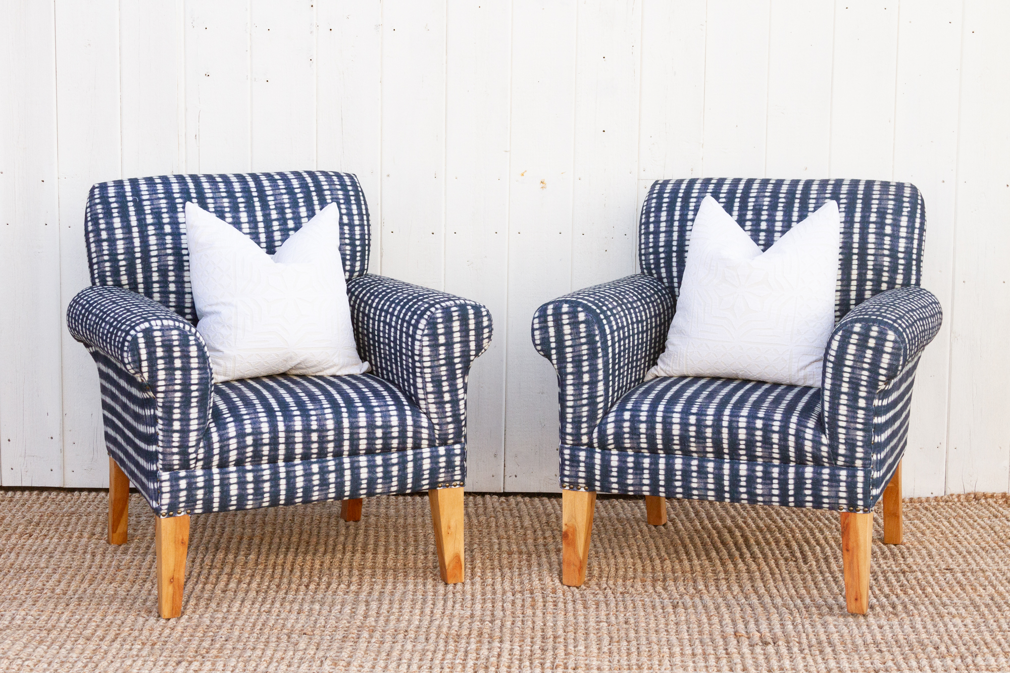 Pair of Indigo Bergere Club Chairs