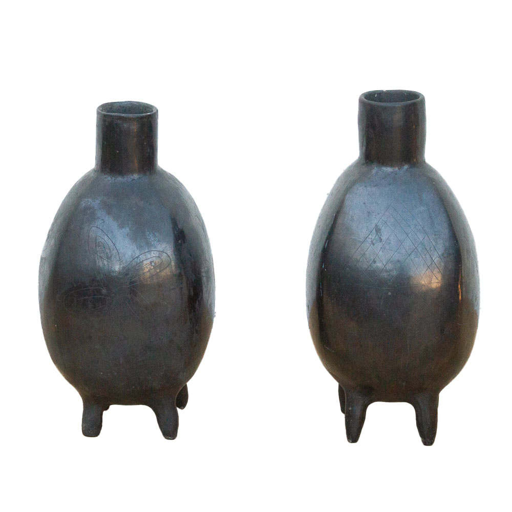 Pair of Vintage Oaxacan Black Clay Vases