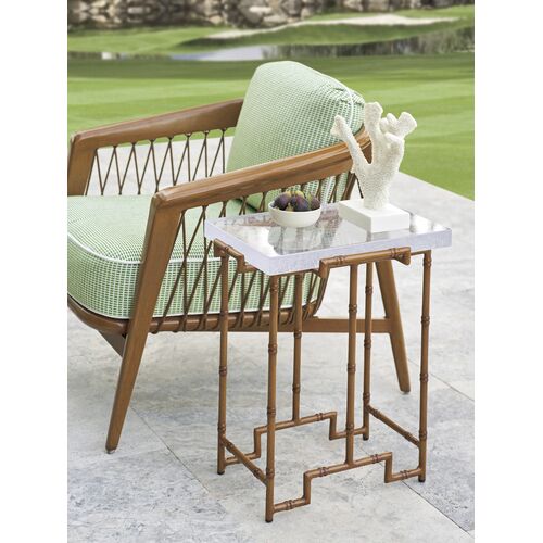 Palm Desert Poolside Outdoor Aluminum/Bubble Glass Top Accent Table, Brown/Semi-Clear