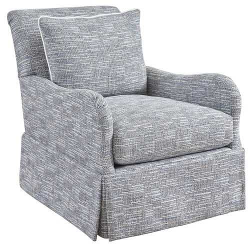 Palm Frond Swivel Chair, Textured Blue/Aqua