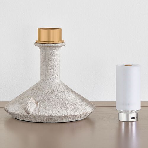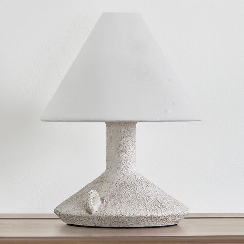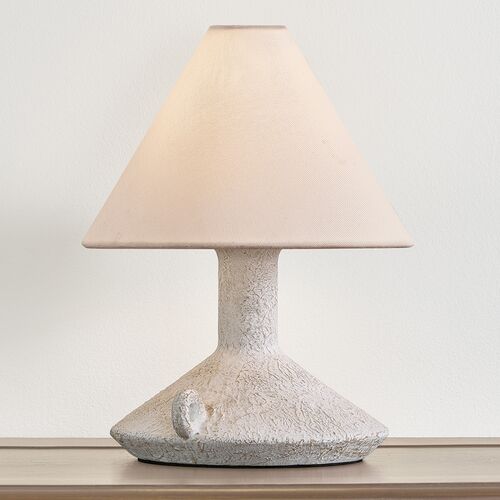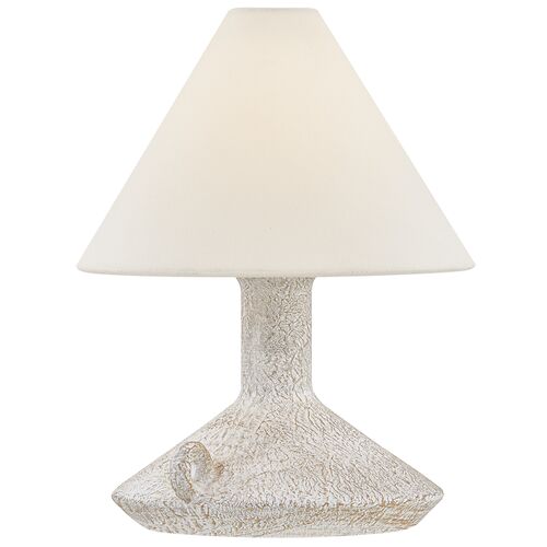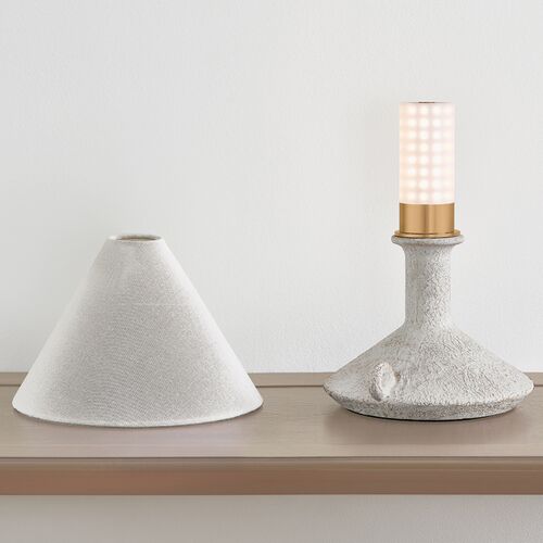 Passage Rechargeable Table Lamp, Patina Brass/Ceramic Riven Chalk/Off White Linen