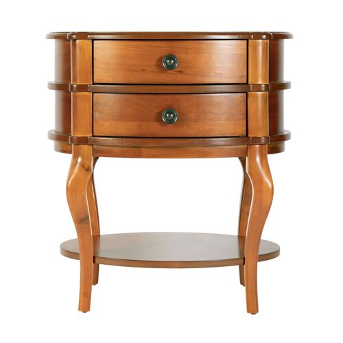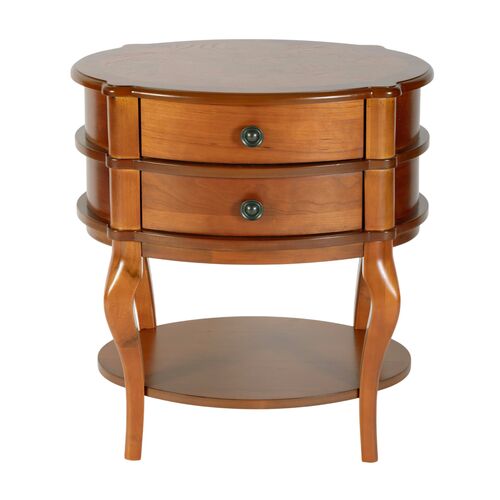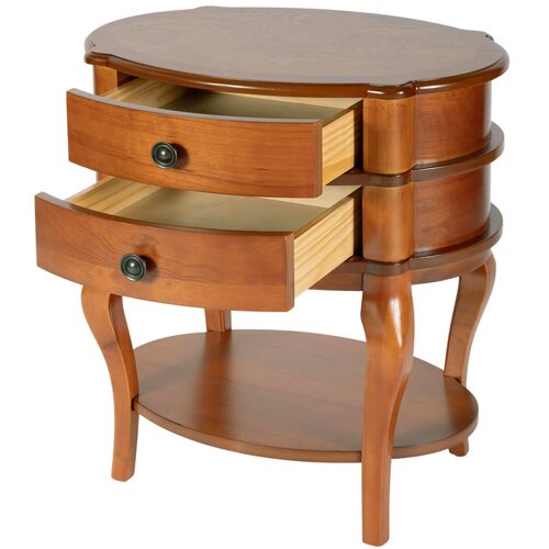 Pauline Oval 2-Drawer Accent Table, Cherry