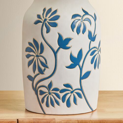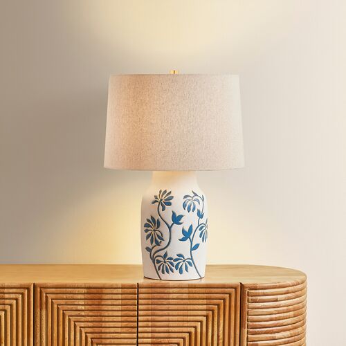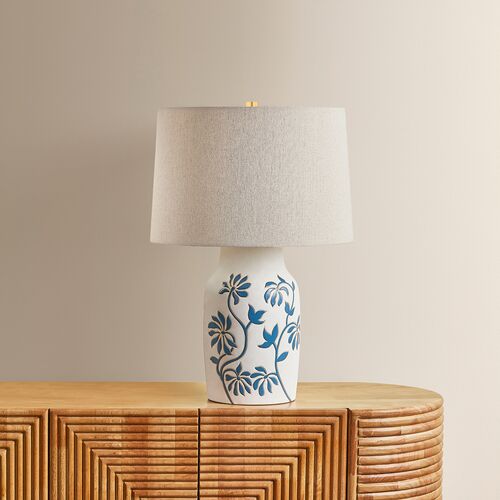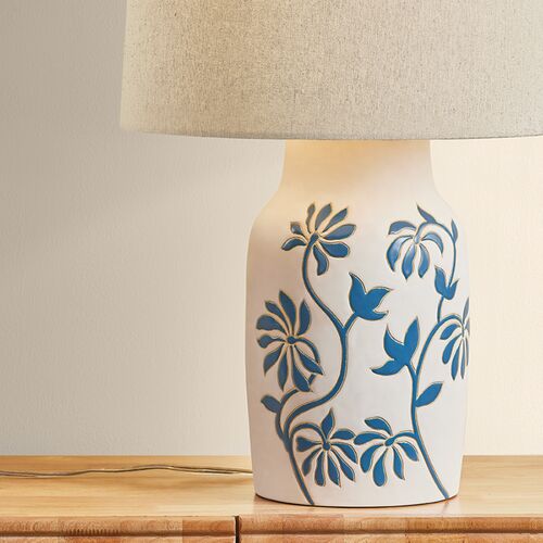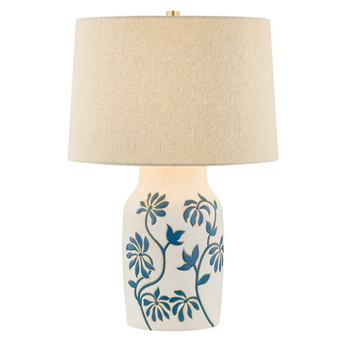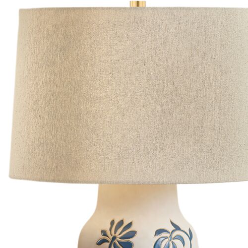 Peregrine Ceramic Whitney Floral Table Lamp, Sandstone Linen/Blue