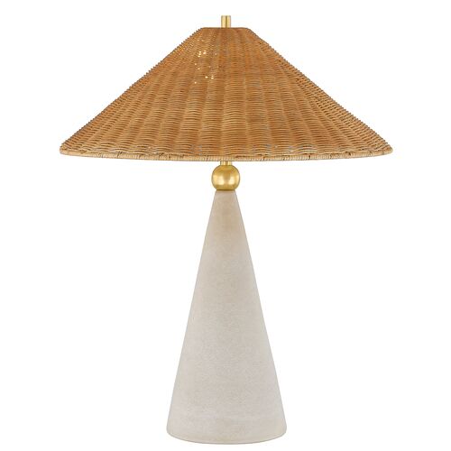 Perilla Table Lamp, Natural Wicker/Ceramic Windswept White