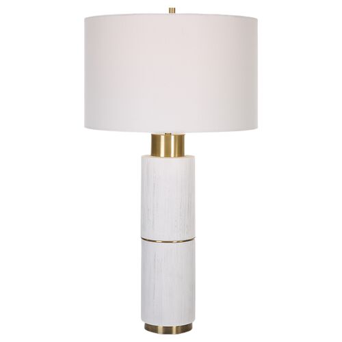 Petraea Textured Column Table Lamp, White