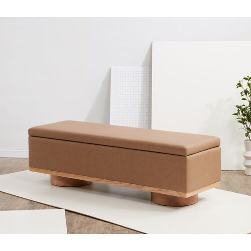 Phyren Vegan Leather Storage Bench, Camel/Natural