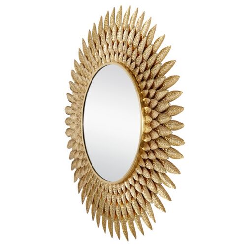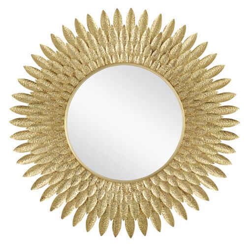 Plume Brass Feather 39" Round Wall Mirror, Gold
