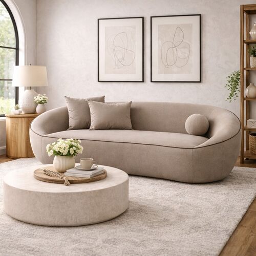 Quelora Curved 98" Vegan Mohair Sofa, Taupe