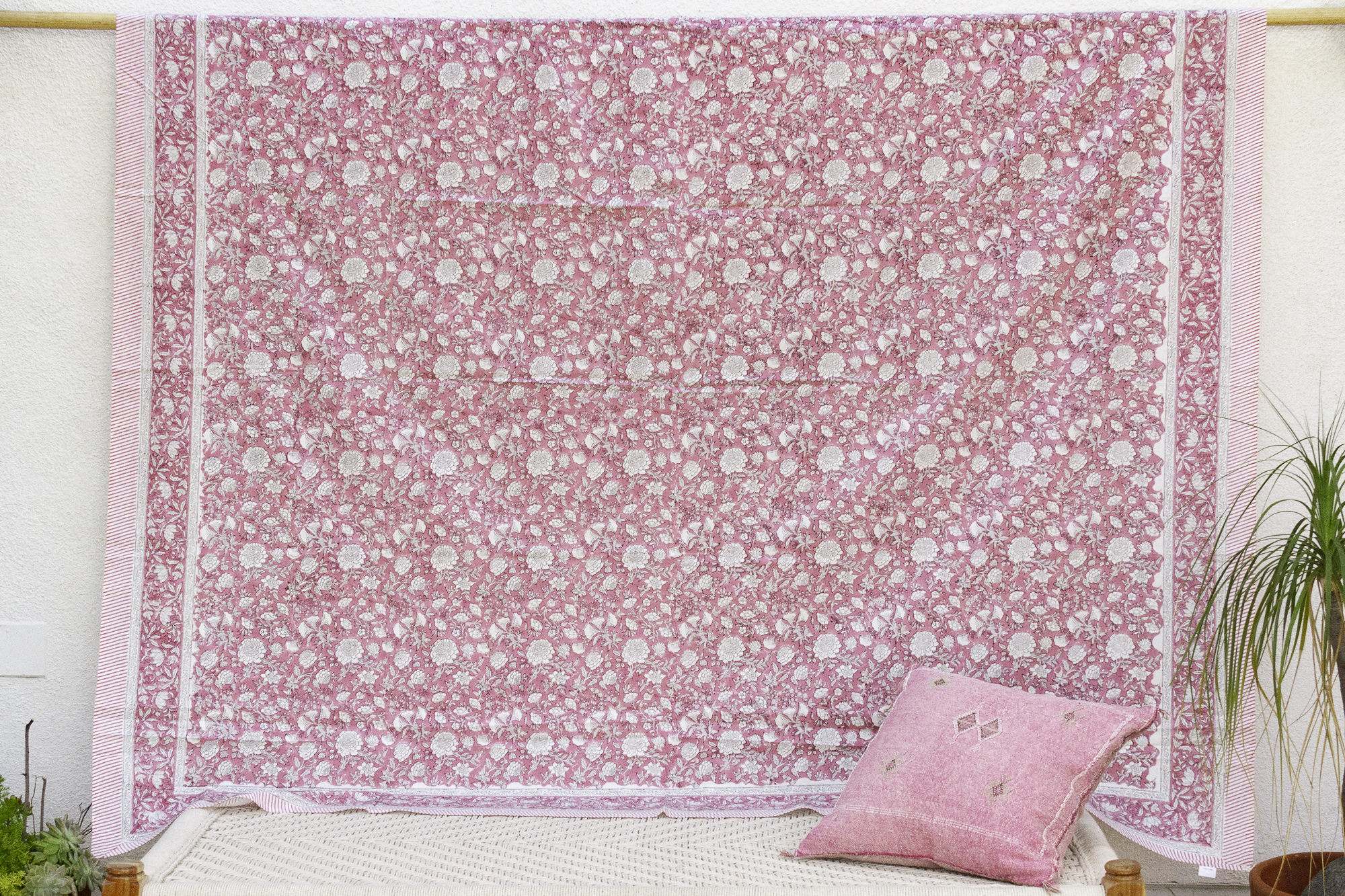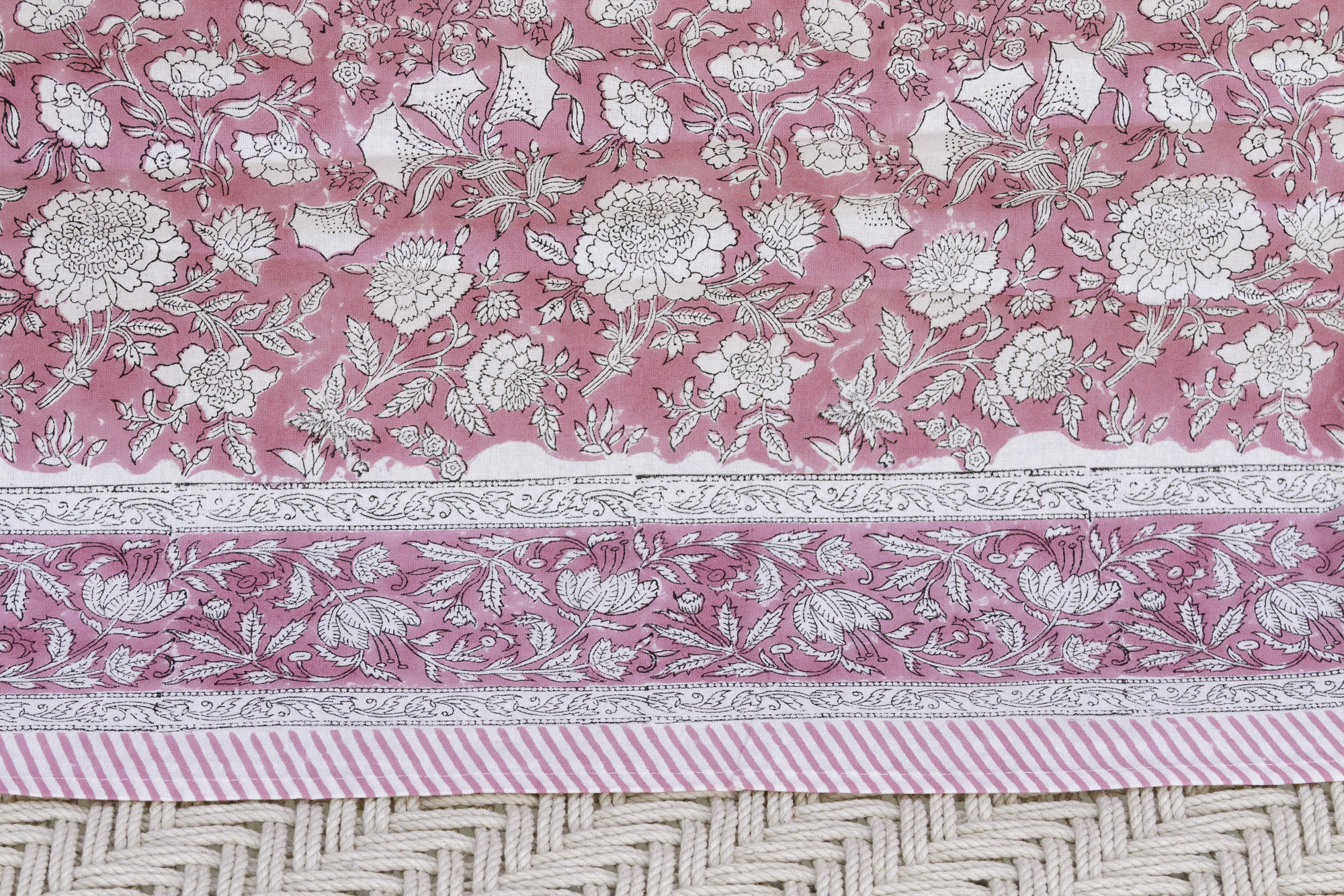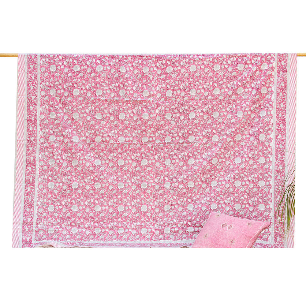 Rajastan Rose Garden,Blockprint Coverlet