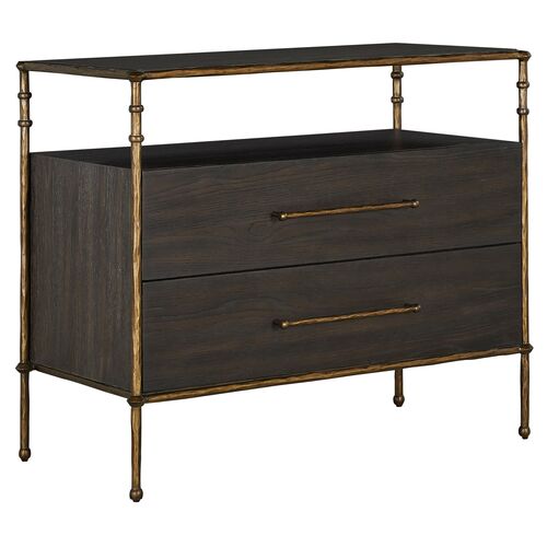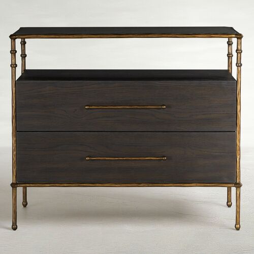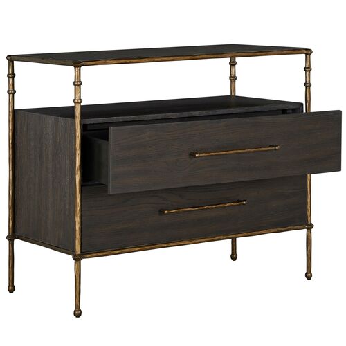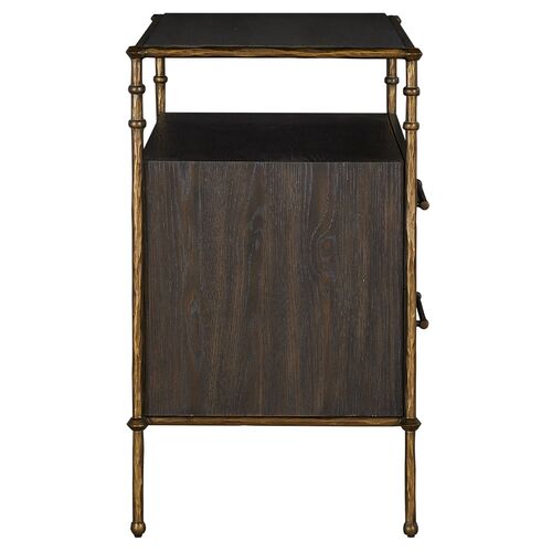 Reese Nightstand, 2-Drawer, Cerused Forest Black/Dark Antique Brass