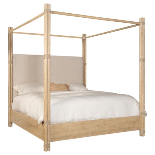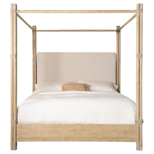 Retreat Pole Rattan Neo Cream Boucle Upholstered Poster Canopy Bed