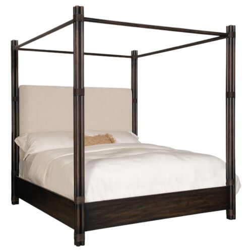 Retreat Pole Rattan Neo Cream Boucle Upholstered Poster Canopy Bed