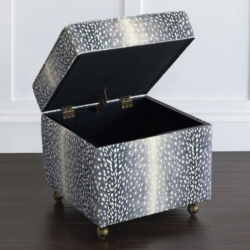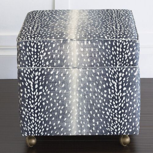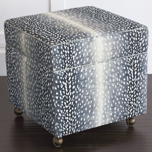 Riley 19" Animal Print Storage Ottoman, Navy