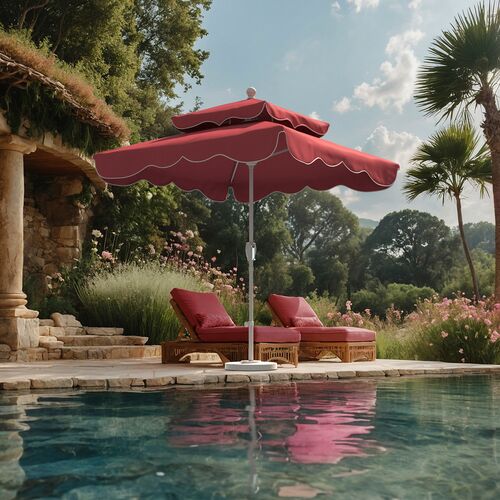 Ripple Two-Tier Square Patio Umbrella, Sunbrella