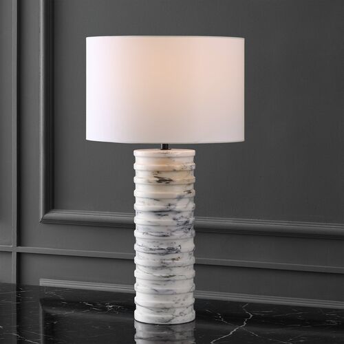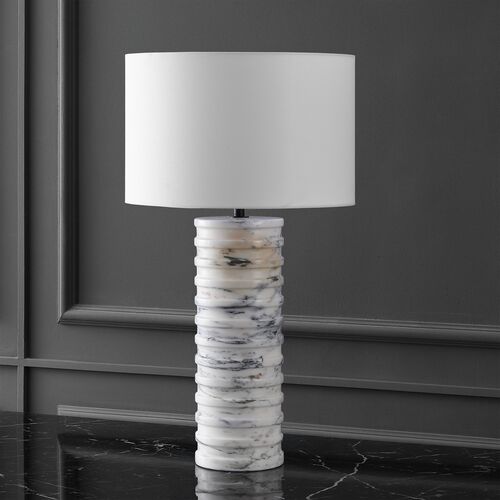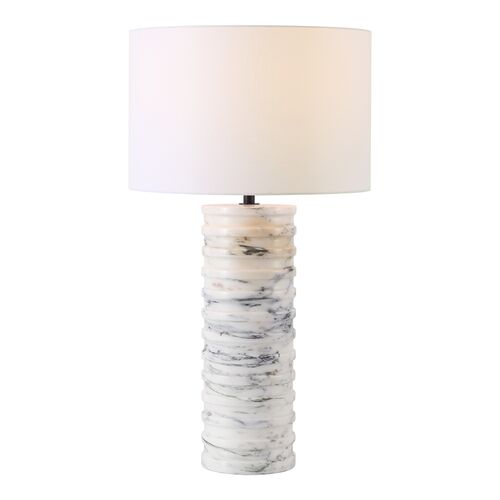 Riviera Round Marble Table Lamp, White/Grey