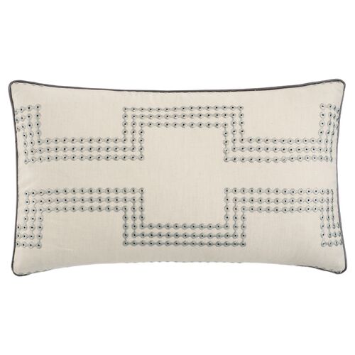 Theo 13x22 Embroidered Border Lumbar Pillow, Gray