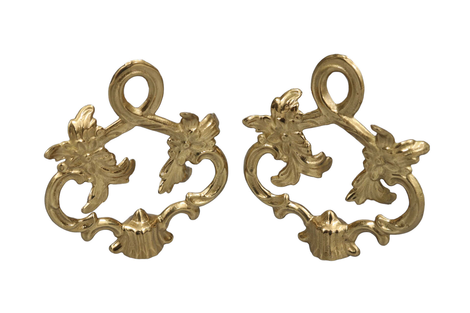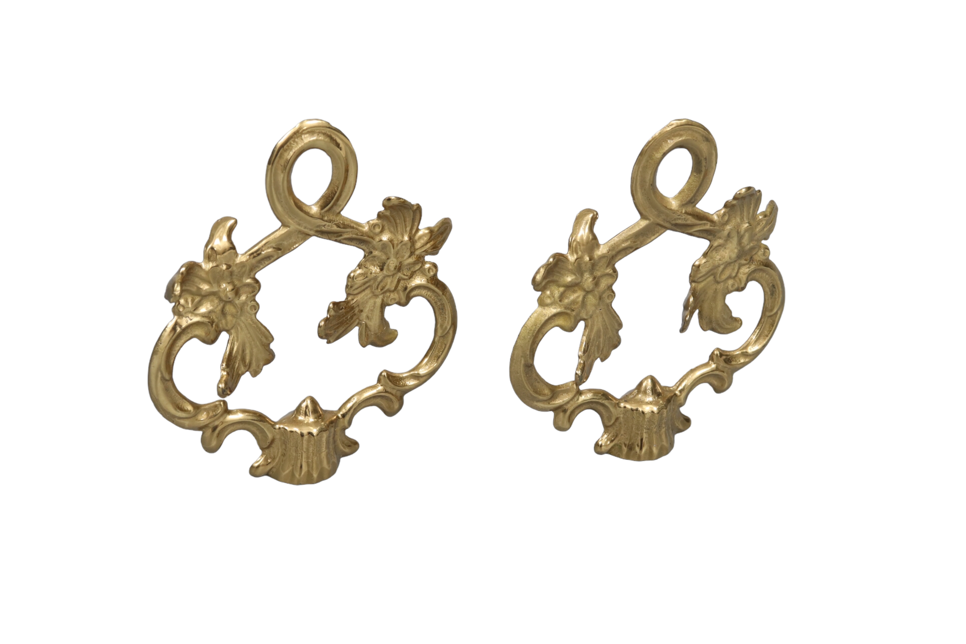 Rocaille Loop Brass Lamp Finials, a Pair