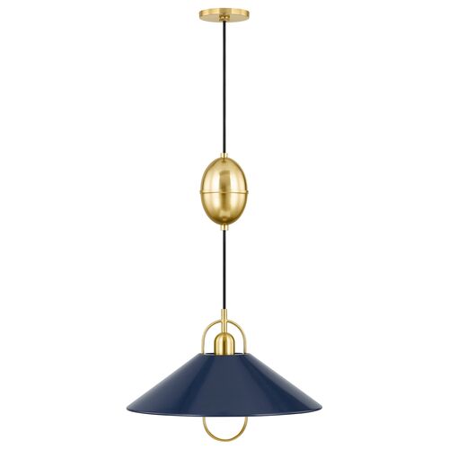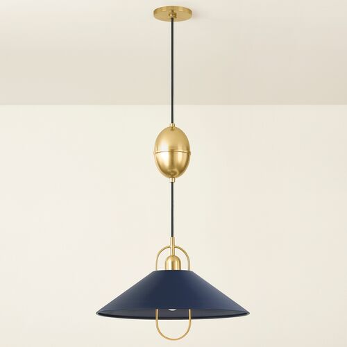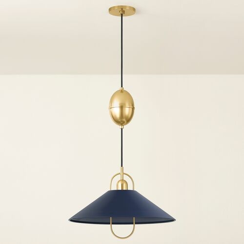 Tilda Adjustable Dome Pendant, Aged Brass/Sofe White
