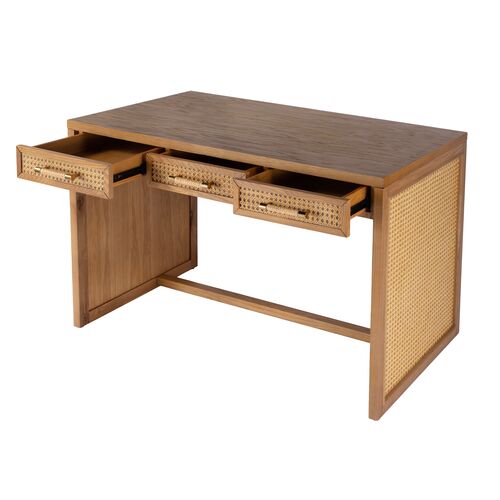 Rotan Cane 3-Drawer Writing Desk, Natural