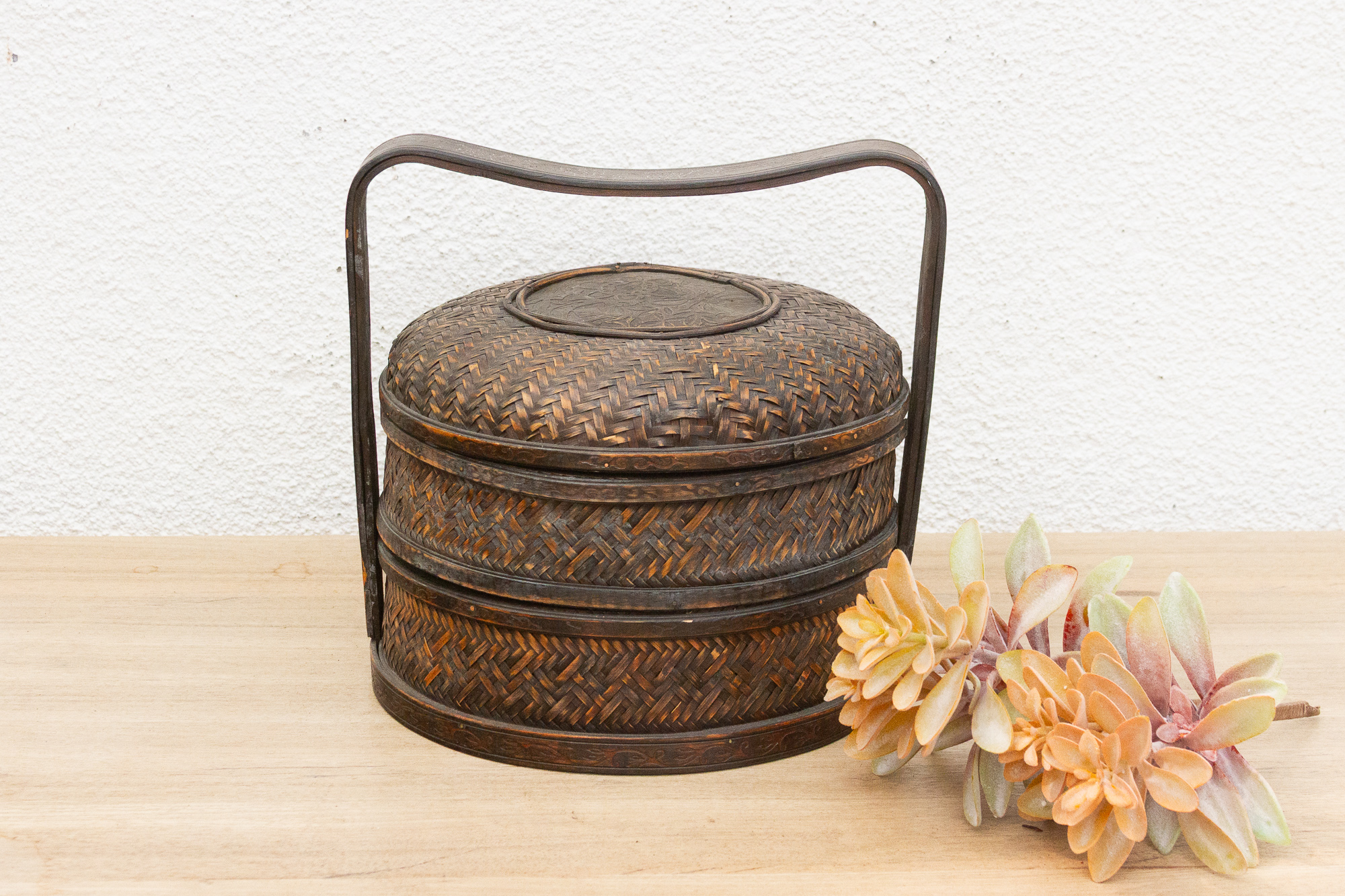 Rustic Antique Chinese Rattan Basket
