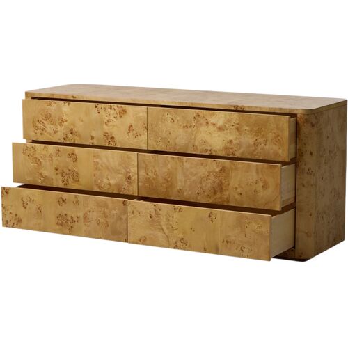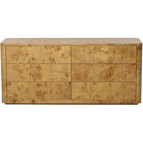 Rylan 6 Drawer Dresser, Natural Mappa Burl