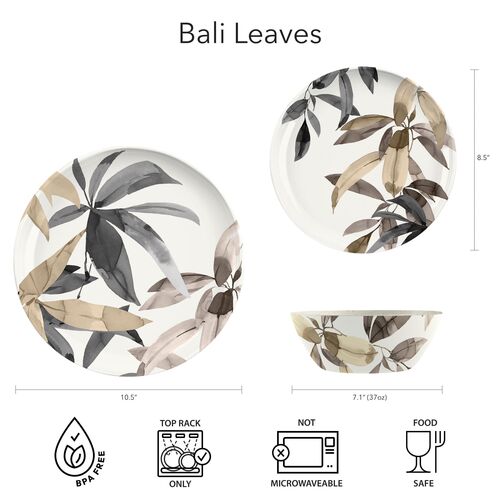 S/6 Bali Leaves Indoor/Outdoor Merge Dinner Plates, Brown