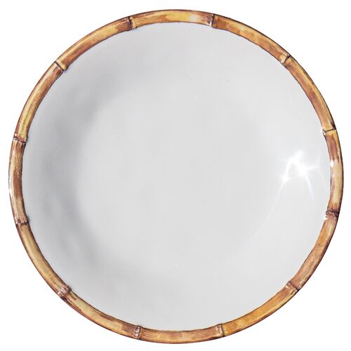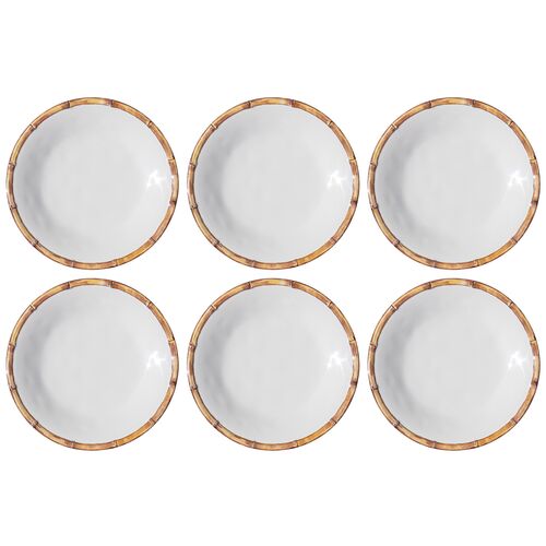 S/6 Bamboo Rim Melamine Dinner Plates, White