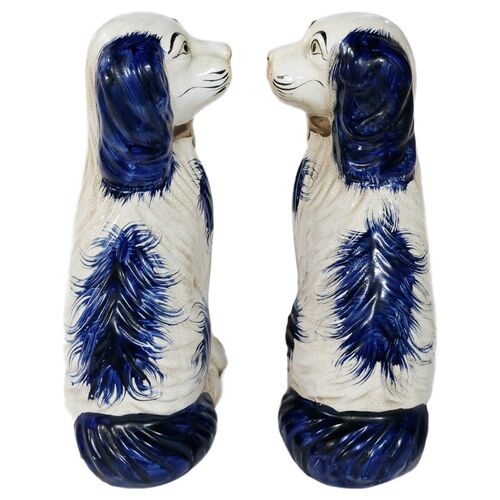 S/2 Blue & White Staffordshire Dogs