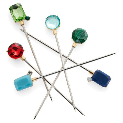 S/6 Bright Faux-Gem Cocktail Picks, Silver/Multi is currently out of stock