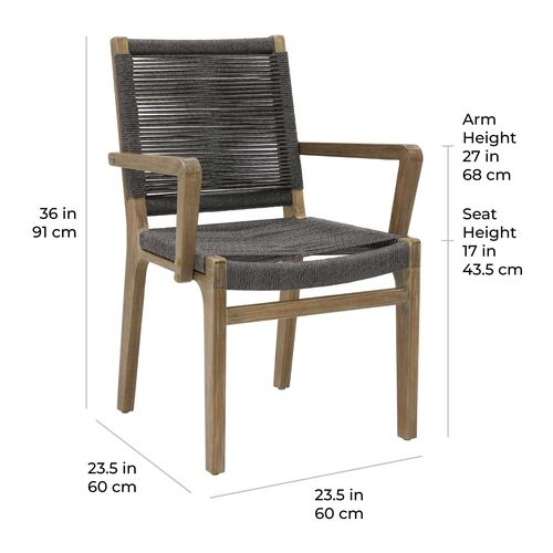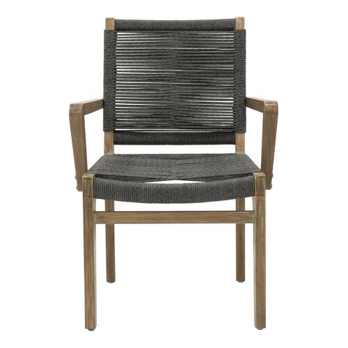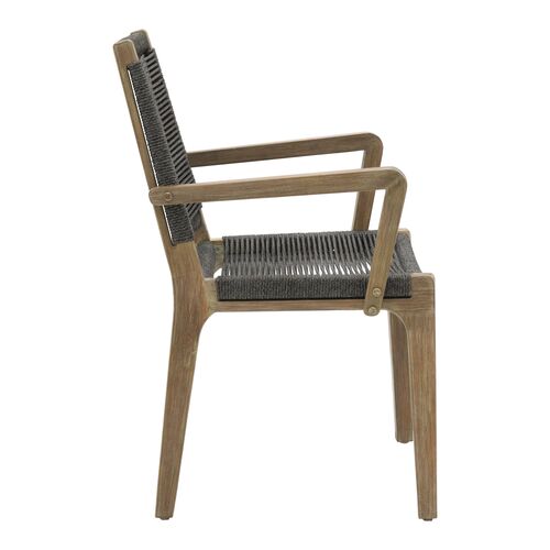 S/2 Caelis Outdoor Eucalyptus Dining Armchairs, Mixed Grey Rope