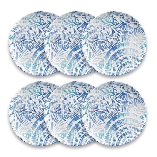 S/6 Coastal Scallops Melamine Salad Plates, Blue
